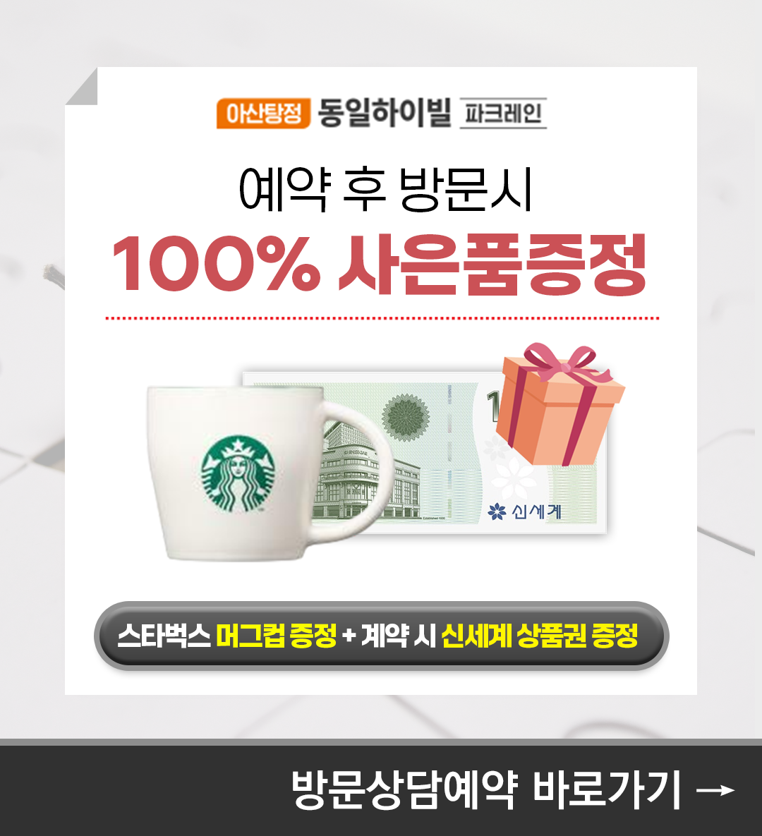 아산탕정 동일하이빌 파크레인 방문예약 고객의 개인정보를 수집합니다. 수집한 개인정보는 방문예약 이외의 목적으로는 사용하지 않으며,모집 기간 완료 후 즉시 파기합니다. 개인정보의 수집 및 이용에 대한 동의를 거부할 수 있으며, 이 경우 방문예약 접수가 어려울 수 있습니다.